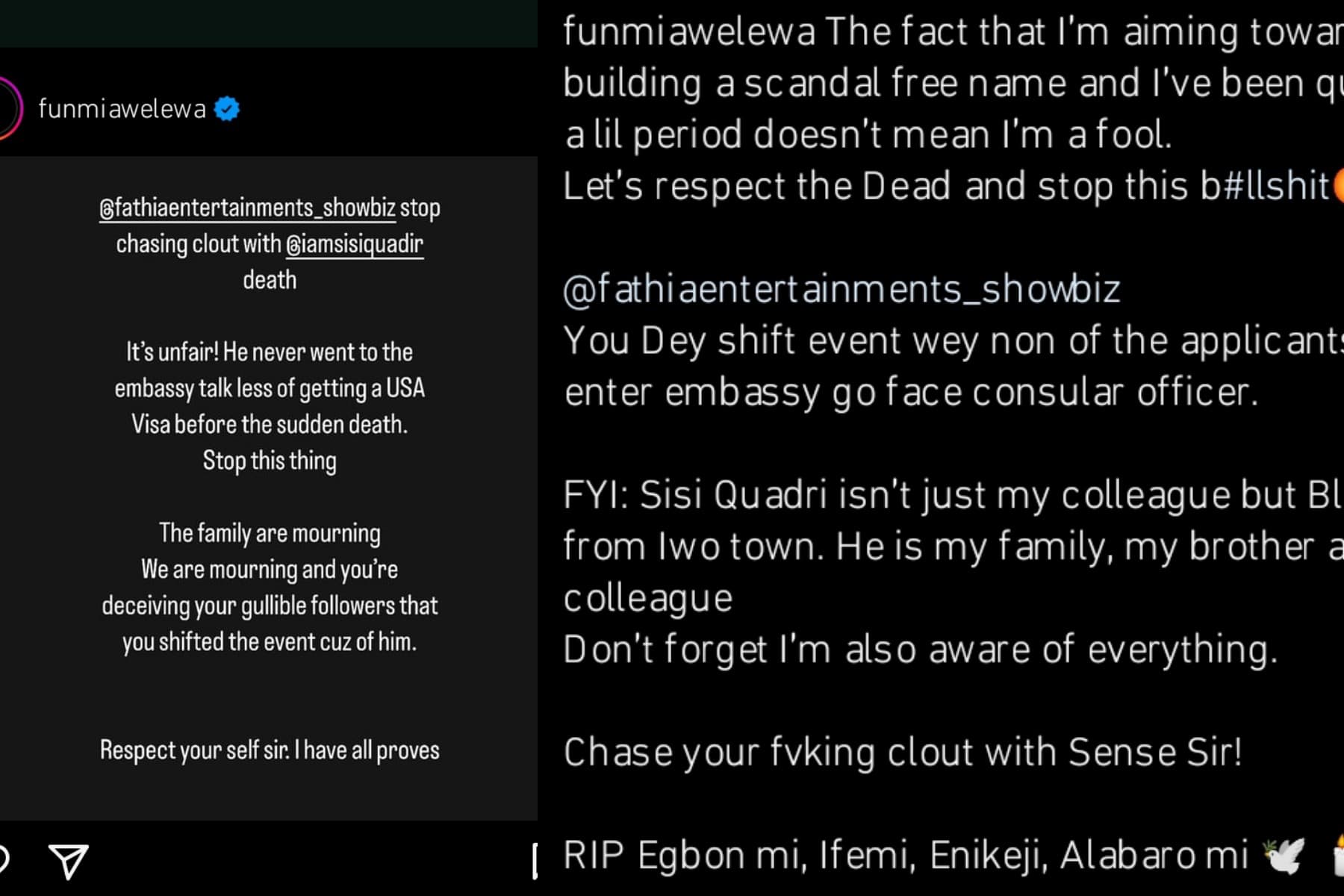 The entertainment company had claimed that Quadri, who passed away unexpectedly, was in the process of securing a US Visa, with his approval allegedly close before his demise.