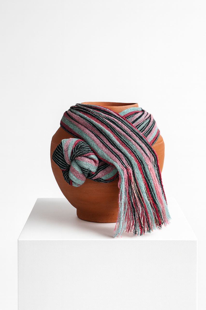 By deliberately uniting the permanence of fired clay with the intimacy of ancestral )àṣọ òkè) hand-woven cloth, Abdulkadir has forged a distinct visual language that demands international critical attention.