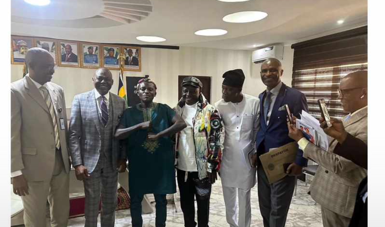 Portable and his father flanked by high ranking police officials at Lagos headquarters