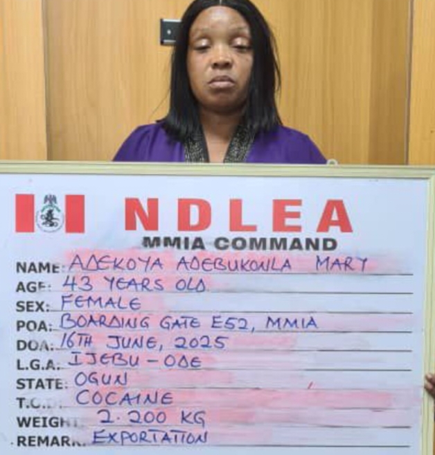 The suspect was arrested on Monday 16th June 2025 based on credible intelligence. Under surveillance, Adekoya was allowed to check in her luggage and arrested at the point of boarding her Qatar Airways flight to India via Doha. When her luggage was searched, two large parcels of cocaine weighing 2.20kg were found concealed in the walls of the suitcase she was carrying.