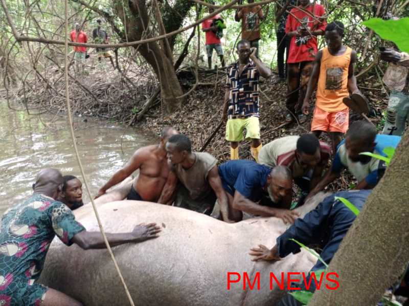 The hippopotamus was killed by a local, Patrick David in a shallow river in Anegbette.