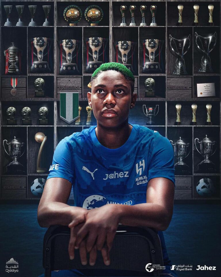 From her early days at Robo Queens and Rivers Angels, to stints at Liverpool, Arsenal, Dalian Quanjian, Barcelona, Bay FC — and now Al Hilal — Oshoala has remained Africa’s biggest female football export.