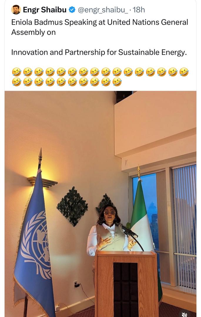 Nollywood actress, Eniola Badmus, has stirred reactions on social media after posting photos of herself allegedly addressing the United Nations General Assembly (UNGA).