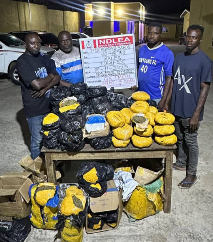 Two suspects: Jamiu Kunle Kardoso and Oriyomi Waliu were on Friday 14th November arrested with 130 pouches of Canadian Loud weighing 65.150kg in Surulere area of Lagos, just as Taofeek Moraina was nabbed same day with 282 blocks of Ghana Loud with a gross weight of 141kg at Otto, Oyingbo area of Lagos.