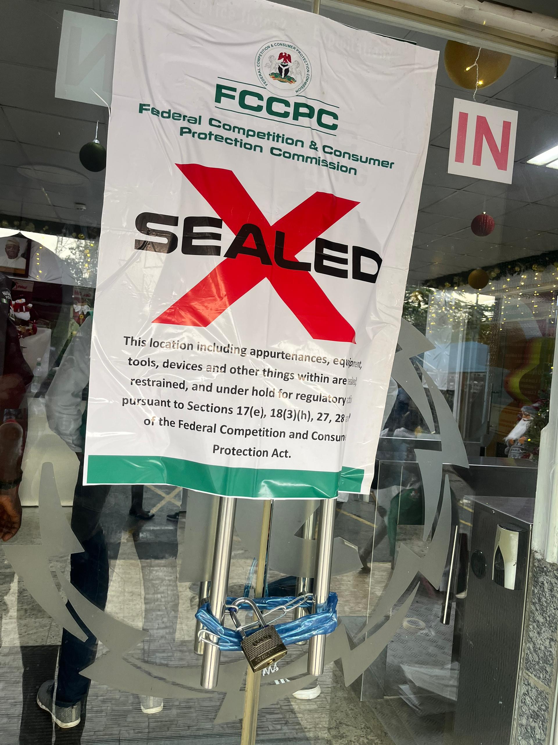 Olorungbebe said the Commission invoked its powers under Sections 17, 18, 124, 150, and 155 of the Federal Competition and Consumer Protection Act (FCCPA) 2018, which empower the FCCPC to issue directives, enforce compliance, and seal premises where persistent breaches harm consumers.