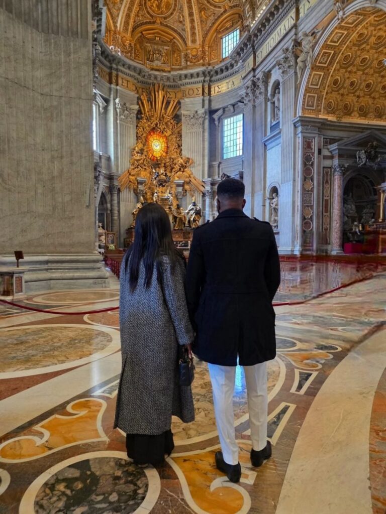 The gesture took place after the couple attended mass at St. Peter’s Basilica, where Ebuka went down on one knee and presented a ring.