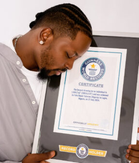 Fola David‑Tolaram created the largest drawing by an individual, measuring 1,004.7 square metres, producing a powerful visual statement that celebrated African identity and artistic excellence. His work gained international attention and reinforced Nigeria’s growing presence in the global art community.