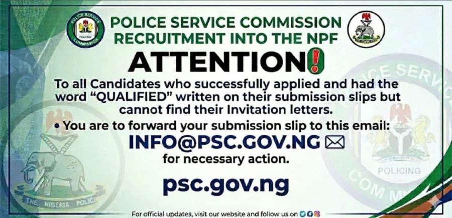 In the terse notice tagged: Police Service Commission Recruitment into the NPF, the Commission explained what to do by candidates who successfully applied and had the word “QUALIFIED” written on their submission slips but cannot find their invitation letters.