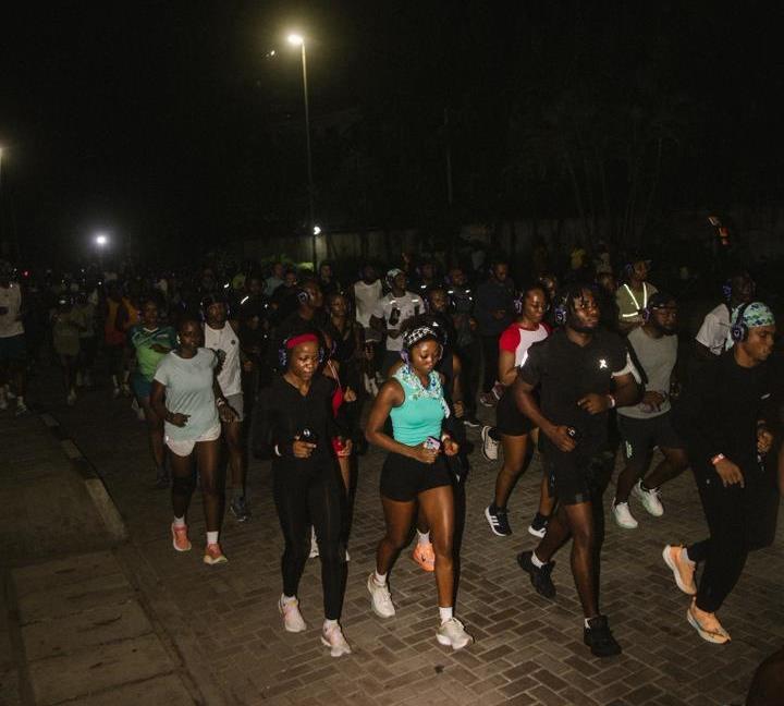 On April 19, 2026, over 90 participants laced up for a vibrant 6-kilometre night run through Lagos’ upscale Ikoyi district. Each runner moved in synchronized rhythm, wireless headphones streaming the same high-energy playlist, transforming the city streets into a pulsating silent party on the move.