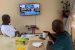 Yahaya Bello sips tea watching TV results of governorship poll