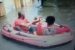 A couple has been caught on video paddling a boat in a flooded area in Lekki, Lagos, Southwest Nigeria.