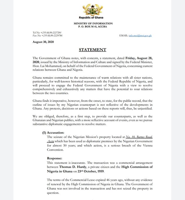Ghana has now responded to all issues raised by Nigeria, acknowledging they have the potential to sour relations between the two countries.